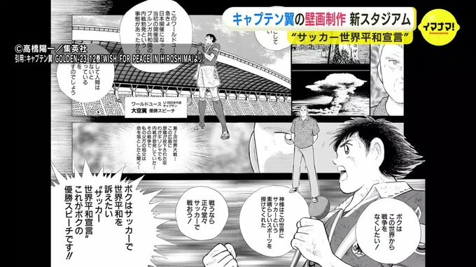 高橋さんは以前、広島での原爆の被害を描いた上で、ワールドユースでの主人公の大空翼の優勝スピーチでこんなシーンを描いています