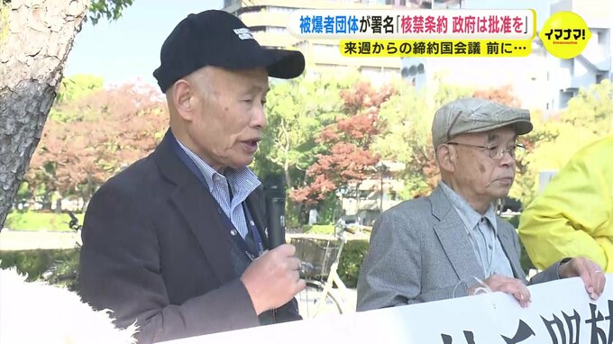 27日から始まる核兵器禁止条約の締約国会議を前に、被爆者団体が日本政府の条約批准を求めて署名活動をしました。