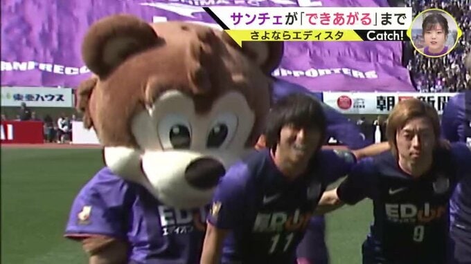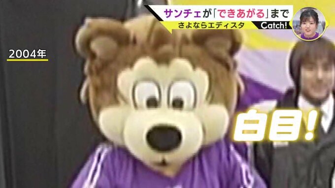 降格から1年でJ1復帰した2004年。サポーターとふれ合う応援イベントに登場したサンチェです。白目の割合が増えていませんか? なんだか少しやせたような気もします。