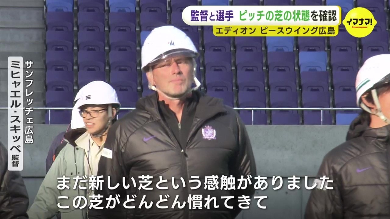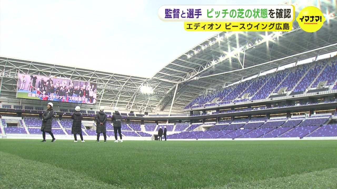 今月中旬に、フィールドの芝を張り終えた、「エディオンピースウイング広島」に、サンフレッチェとレジーナの監督や選手、県サッカー協会など関係者が初めて足を踏み入れました。