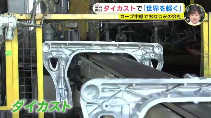 時代は大きく変わり、自動車業界はEVシフト。航続距離を伸ばすためより軽くて耐久性の高いアルミパーツを作るダイカスト技術の重要性は増してきています。リョービは、国内のダイカスト事業者では初めて、一体成形して大型の部品を作る「ギガキャスト」と呼ばれるマシンを導入します。この機械を使えば、自動車の部品数を大幅に減らすことができます。