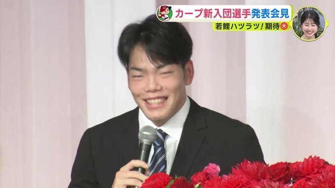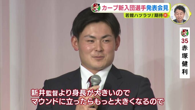「母親に言われたのが、『あんたは納豆で育ったんだよ』と言われて、たぶん納豆が大きくなった要因だなと思います。新井監督より身長が大きいので、マウンドに立ったらもっと高くなるので、そういうのを生かしてアピールしていければなと思います」
