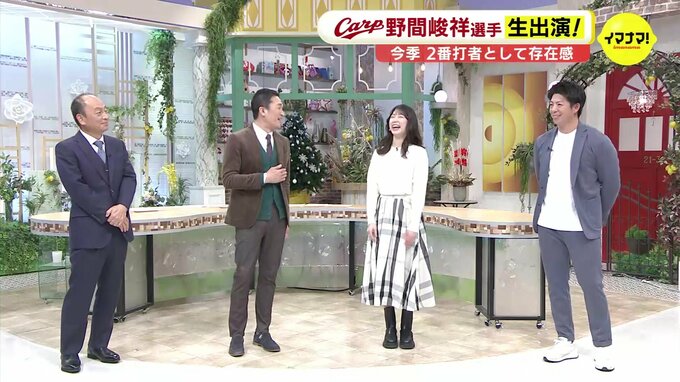 野間選手が活躍すれば、選手もファンも盛り上がる。野間選手が出演すれば、スタジオも盛り上がる。きょうは番組「イマナマ!」一同、野間選手に乗っかっていきます。