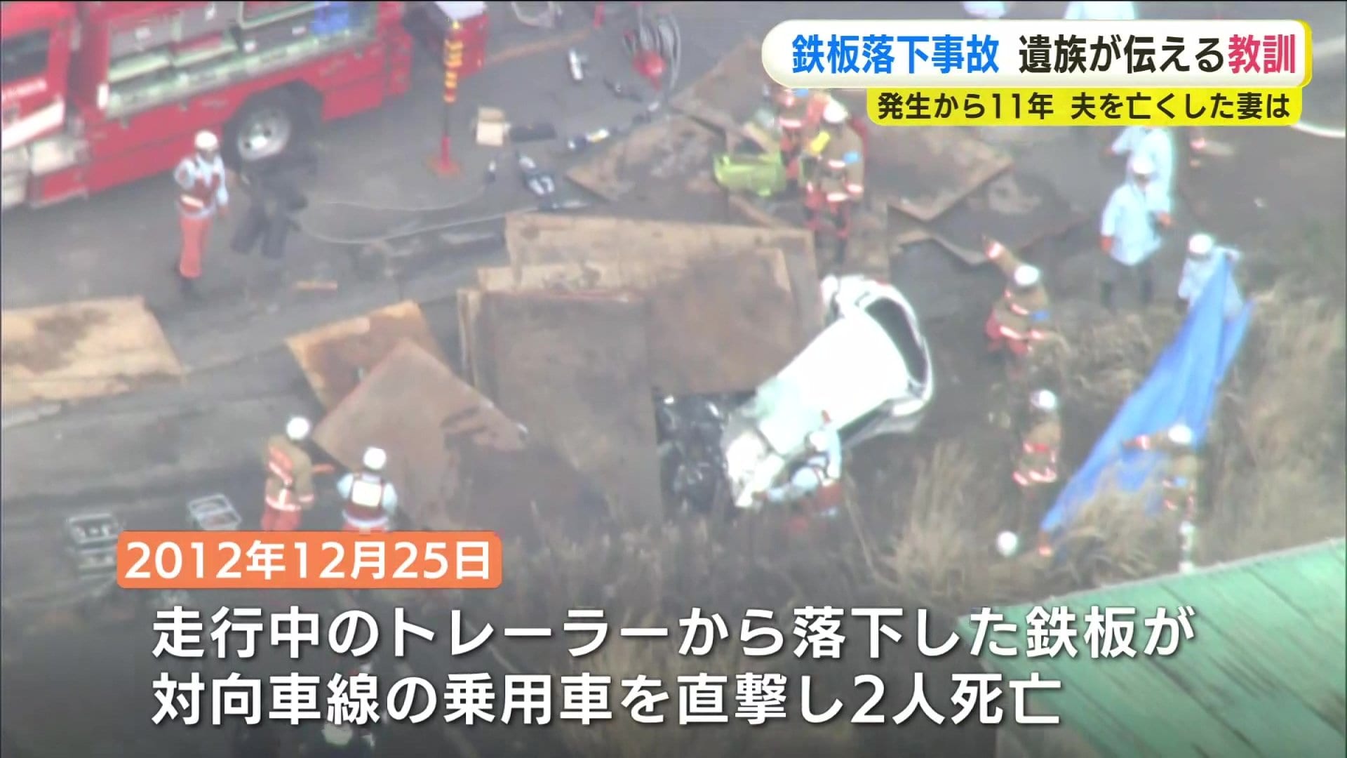 11年前の12月25日、東広島市で、走行中のトレーラーから落下した鉄板が乗用車に直撃し2人が亡くなりました。事故に夫を奪われた女性が今の思いを話しました。