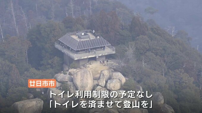 年末年始、観光客で賑わう広島県廿日市市宮島の弥山で、トイレ洗浄用の水が不足する恐れが出ています。