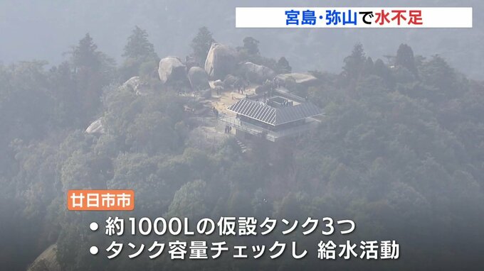 年末年始は、コロナ禍からの回復で多くの登山者が見込まれる宮島の弥山ですが、廿日市市によりますと、9月以降の少雨により山水を使用している展望休憩所のトイレで洗浄用水の不足が懸念されているということです。
