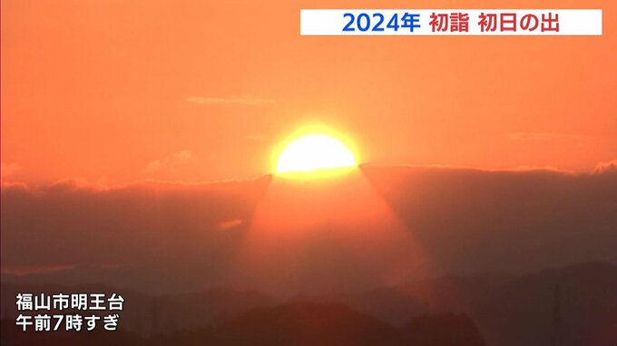 福山市明王台です。低い雲の上から太陽が顔を出し、初日の出となりました。