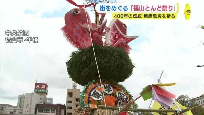 400年前の福山城築城を祝って始まったとされる「福山とんど祭り」が、広島県で行われました。
