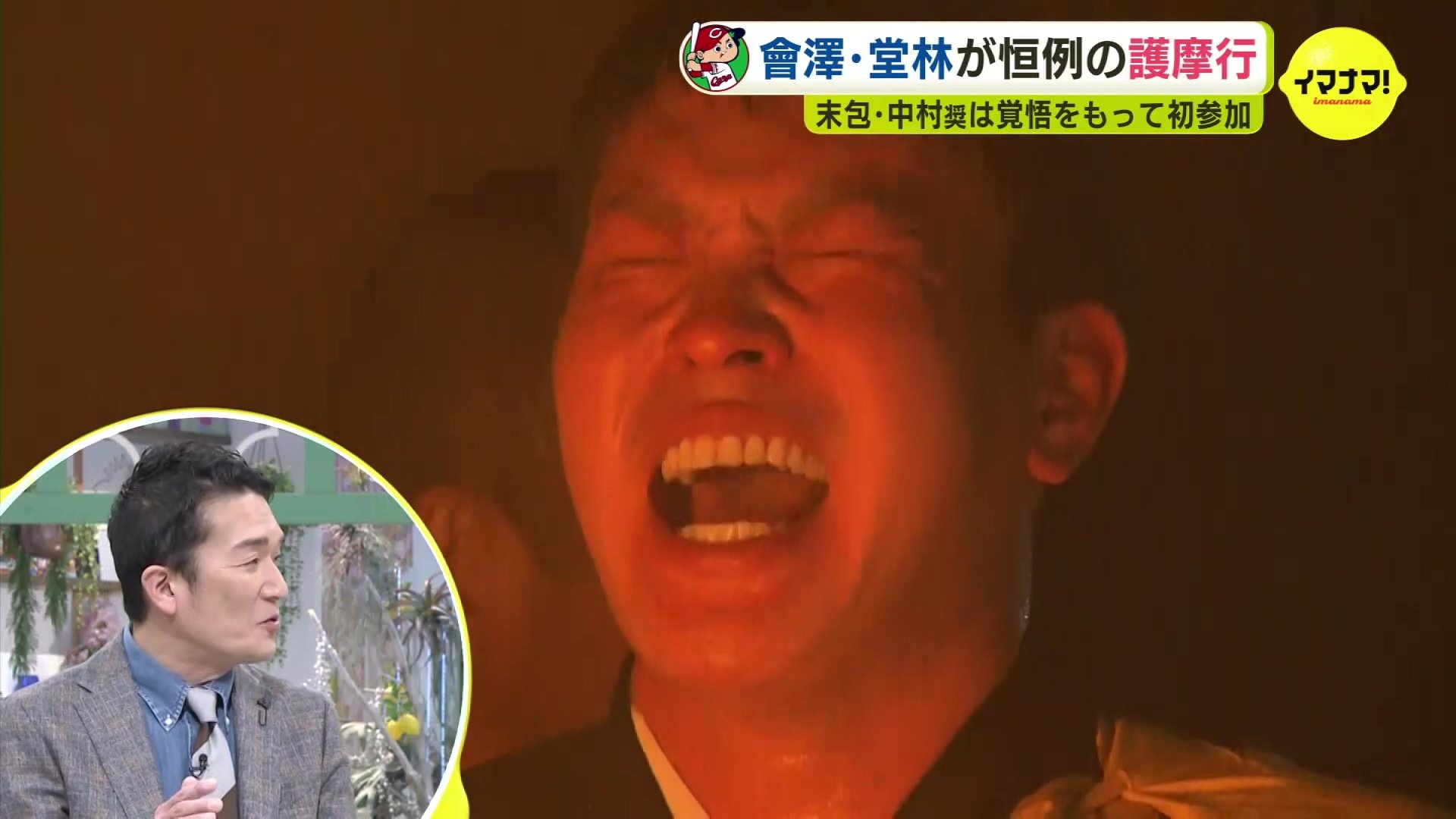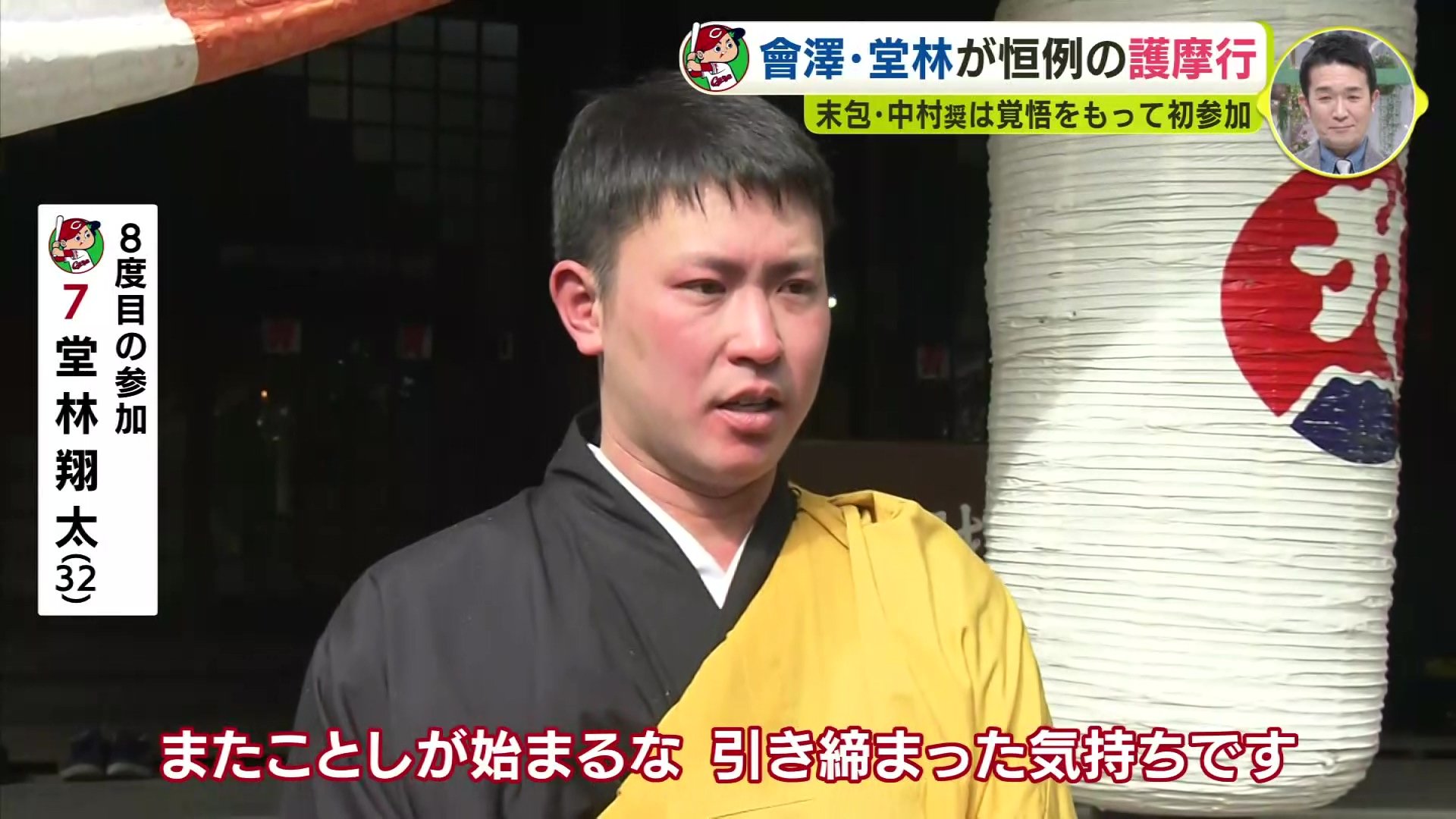 広島は寒い一日となりましたが、“アツい” 映像が届きました。広島カープの 會澤翼 や 堂林翔太が、恒例の護摩行を行い、末包昇大 と 中村奨成が初めて参加しました。