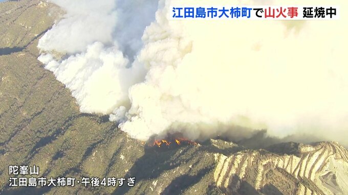 山火事が発生したのは、江田島市大柿町にある陀峯山の斜面で、消防によりますと、午前10時20分ごろ、対岸の倉橋町の通行人から「山から煙が見える」と通報があったということです。