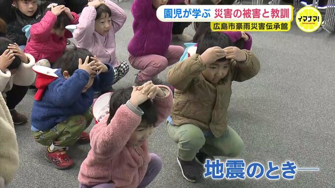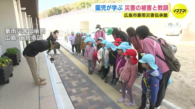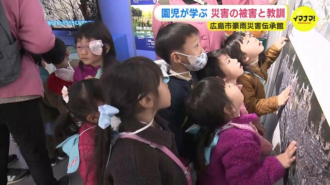 広島土砂災害の被害や教訓を伝えるため、2023年にオープンした「豪雨災害伝承館」を、地元の幼稚園と保育園の園児が見学しました。