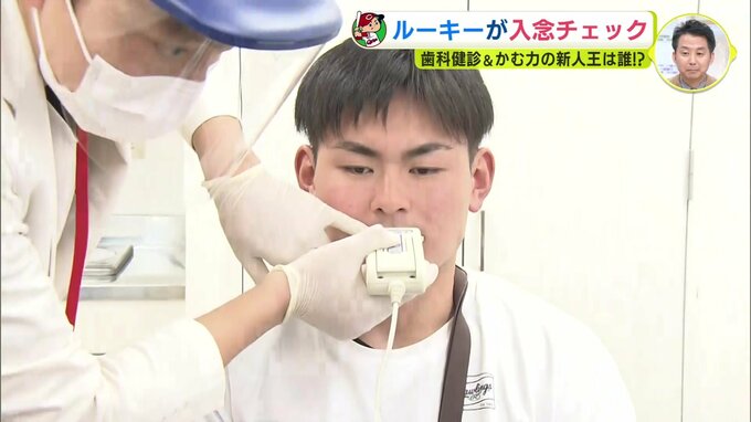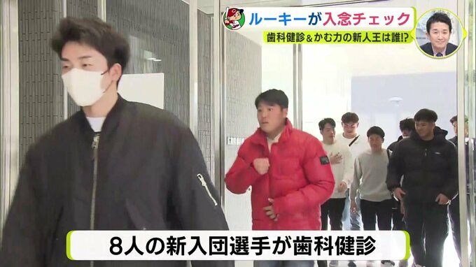 広島市東区にある広島口腔保健センターを訪れたのは、じゃっかん不安な表情の新入団選手たち。8人は、順番にレントゲン検査を行うなど、虫歯や歯周病がないかどうか、2時間かけて入念に診察を受けました。検査結果は、「8人全員、異常なし」でした。