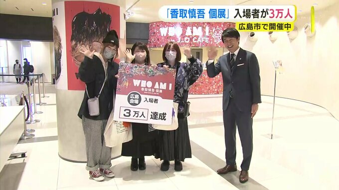 広島市で開催されている「香取慎吾個展」の入場者が18日、3万人に達し記念のセレモニーがありました。