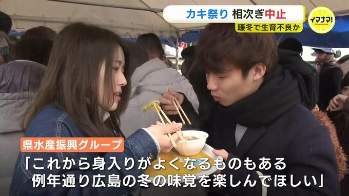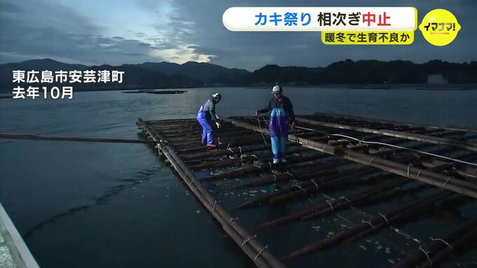 この時期、広島県内で人気の「カキ祭り」が相次いで中止となっています。カキの「生育不良」が理由とみられ、暖冬による海水温の上昇や夏からの雨の少なさが影響しているようです。