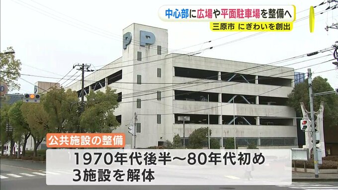 広島県三原市は24年度から、市中心部で老朽化する施設を解体し、広場や駐車場をつくる整備事業に取り組みます。