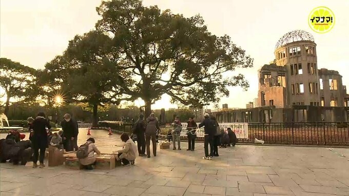 広島市中区の原爆ドーム前で開かれたこのイベントは、「核兵器廃絶をめざすヒロシマの会」が主催し、メンバーや市民などおよそ70人が集まりました。