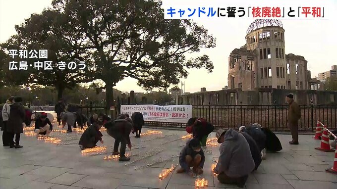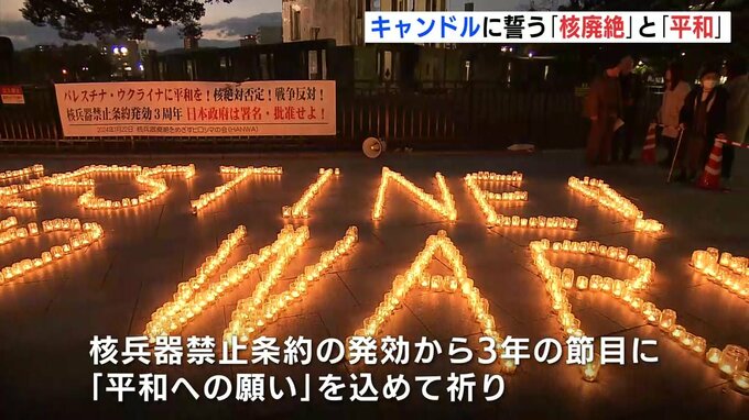 核兵器禁止条約の発効から3年を迎えた22日、広島の市民グループがキャンドルを灯し、核兵器廃絶や平和への思いを新たにしました。