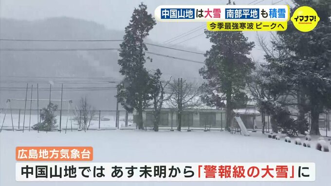 この冬一番の強力寒波は、これからがピークです。中国山地を中心に雪の降り方が強まる予想で、広島地方気象台は北部では、24日未明から「警報級の大雪」になるとして警戒を呼びかけています。