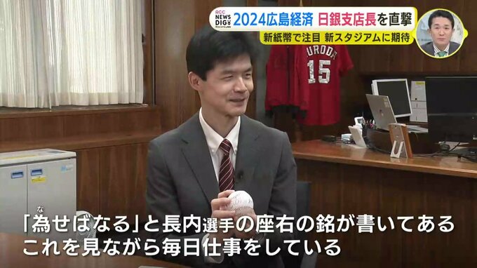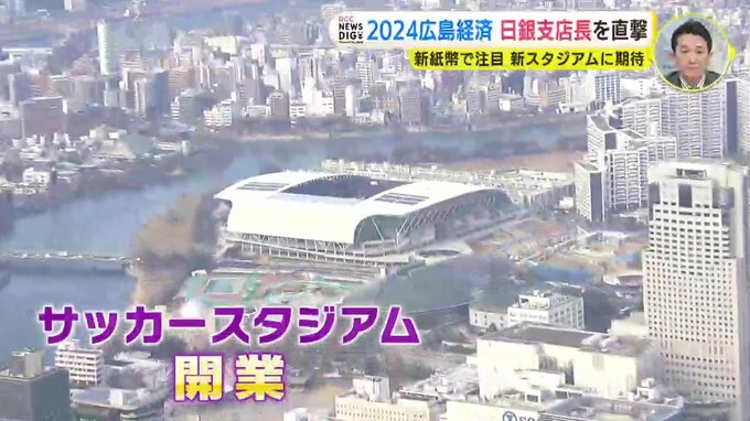 井上広隆支店長「Jリーグの試合が終わった後に、観客の方々が紫のユニフォームを着て街に繰り出していくということがあれば、本当に賑わいにつながっていくということになる。またサッカースタジアムのみならず、その周り「Hiropa(ヒロパ)」とか広島城三の丸広場の整備も併せて行われています。これが一体となって街の大きなマグネット『磁力』になることを期待しています」
