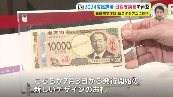 井上広隆支店長「こちらが今年の7月3日から発行が開始されます、新しいデザインのお札になっております」