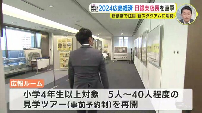 日銀広島支店では、身近に感じてもらおうと、広報ルームを昨年秋にリニューアル。5人以上から予約制の見学ツアーも再開しました。1億円の重さを体感することもできます。1億円は10キロあります。