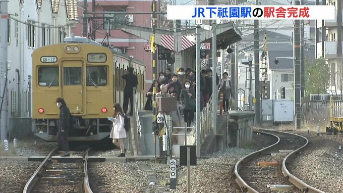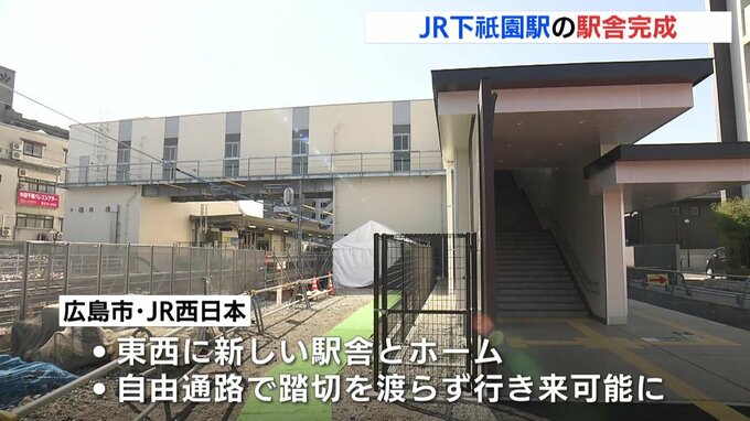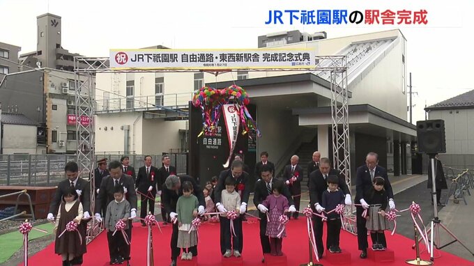 混雑緩和のため整備が進められてきたJR可部線下祇園駅の新しい駅舎と自由通路が完成し、27日、記念式典が開かれました。