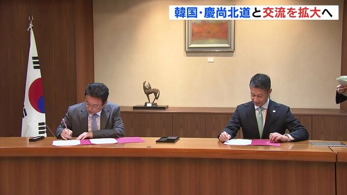 広島県庁を訪れたのは、広島市の姉妹都市、大邱市が位置している韓国・慶尚北道のイ・チョル知事らです。湯崎知事は「両地域の交流が活発になって、日韓交流の拠点となるよう取り組みたい」と話し、イ知事は「交流発展の先頭に立ちたい」と応じました。