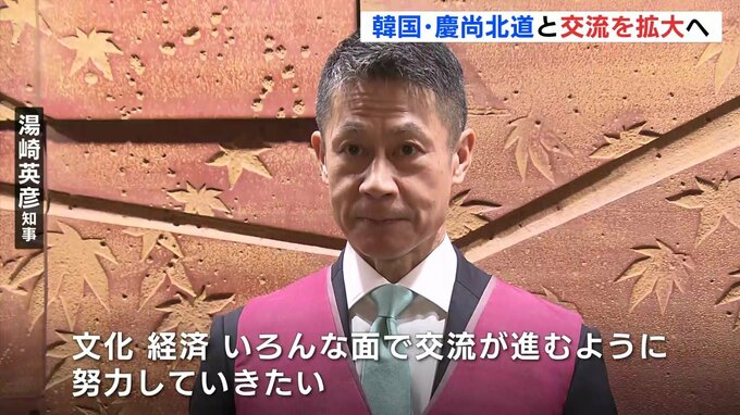 湯崎知事は宮島彫りのお盆を贈り、イ知事からは韓国の羽織などが贈られました。日韓関係は、去年の日韓首脳会談などをきっかけに改善が進んでいます。