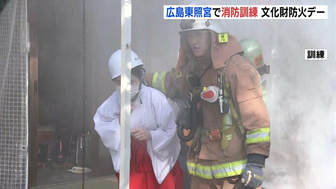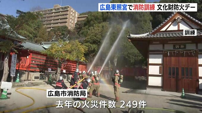 1月26日の「文化財防火デー」にあわせて、広島市の指定文化財となっている「広島東照宮」で、消防訓練が行われました。