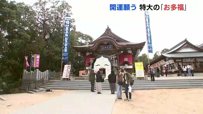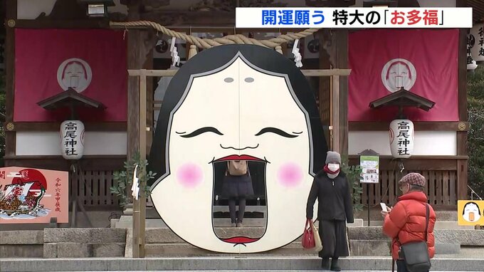 節分を前に、広島県呉市の神社で、特大の「お多福」が今年も、お目見えしました。
