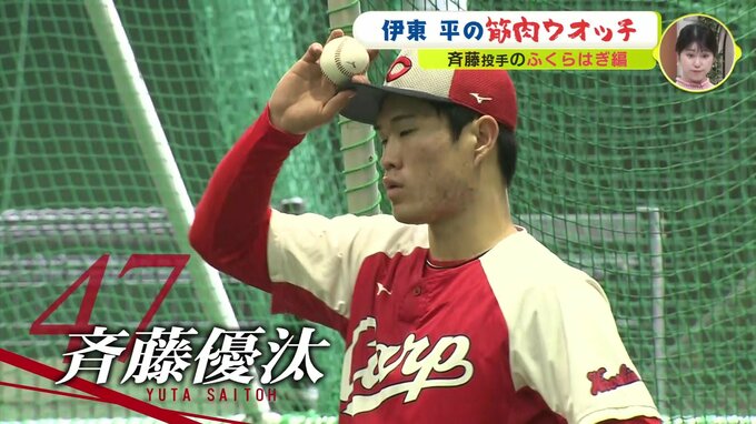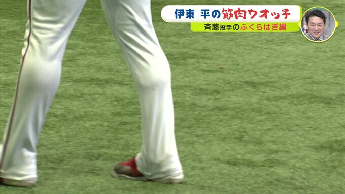 非常に大きいんです。斉藤投手、本当に筋肉がすばらしいです。下腿三頭筋をヒラメ筋とともに構成する腓腹筋なんです。ヒラメ筋も大きいと思うんですけど、腓腹筋のこの立体感がきれいだなと思いました。