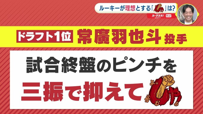 「しびれる展開での見逃し三振をとって、その瞬間に『しゃ!』って言いたいです。2アウト・2ストライク・3ボールで満塁で…、あの場面が一番、ファンのみなさんもしびれると思いますし、見逃し三振の方が気持ちいいので、あこがれています。あこがれていますってのは…、はい」