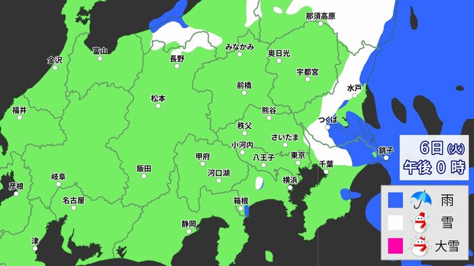 【大雪情報】東京23区も積雪か 月曜午後から関東甲信で大雪予想 1時間ごとの降雪予想 山地最大40cm大雪警戒 平地も広く積雪か 南岸低気圧が発達しながら東進 2024年2月4日(日) 17:57 国内 6日(火)午後 予想降雪シミュレーション