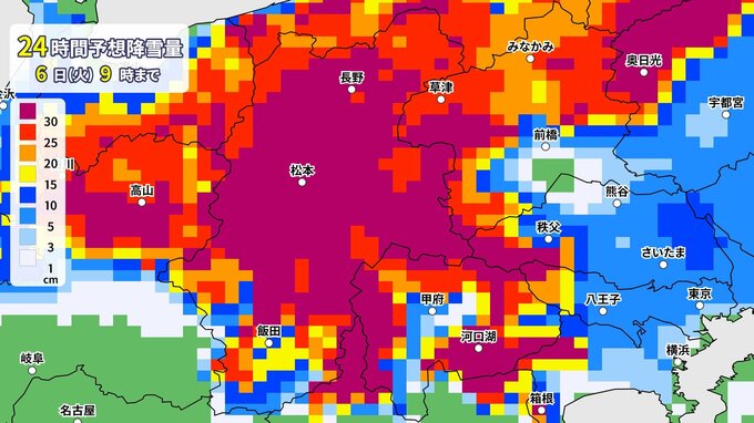 また、北部の山沿いと中野飯山地域、乗鞍上高地地域の積雪の多い傾斜地では、7日にかけて、なだれにも注意してください。