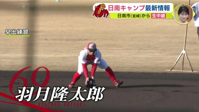 新井監督が期待する若手の競争はさっそく早出の練習から始まります。羽月隆太郎 や 韮澤雄也 など、きょう6日から1軍合流したメンバーの声が球場にこだまします。