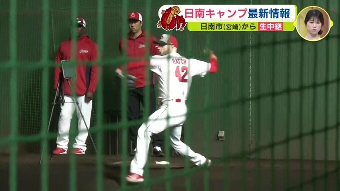 同じく1軍キャンプに合流した新戦力の トーマス・ハッチ と テイラー・ハーン は、スケジュールには入っていなかったものの、早くもブルペン入りを志願。