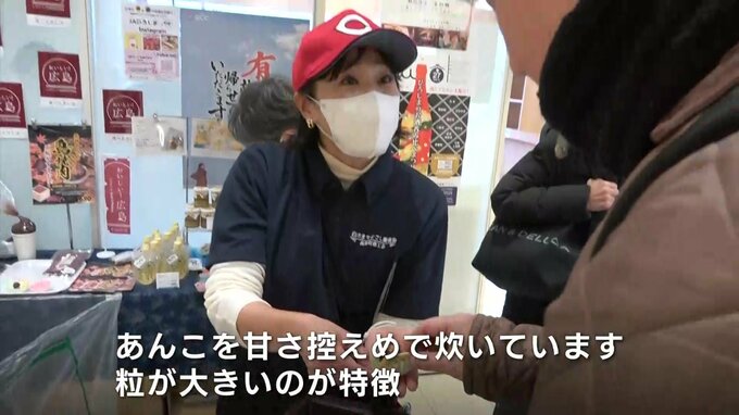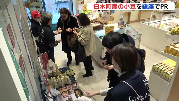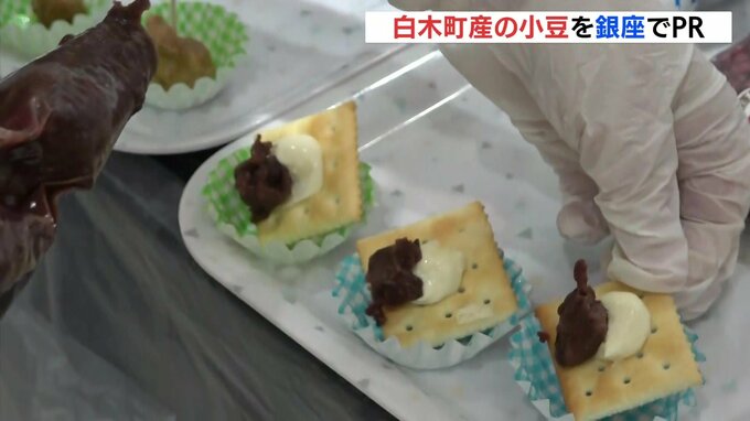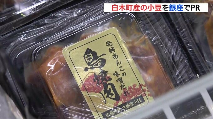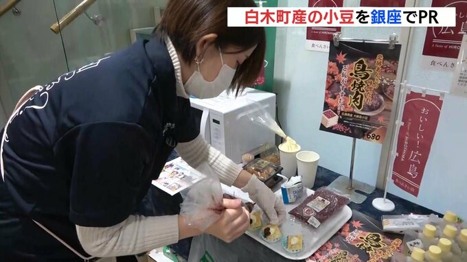 広島市北部の白木町で生産している小豆をPRしようと、東京の銀座で試食販売が行われました。