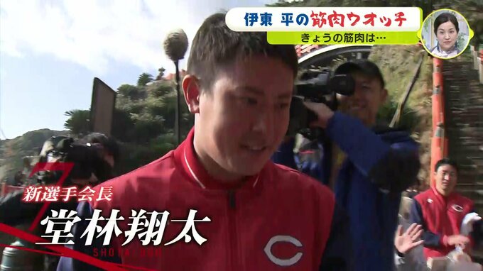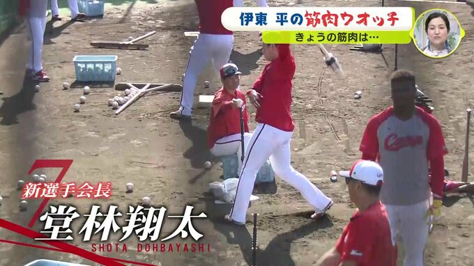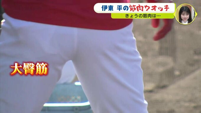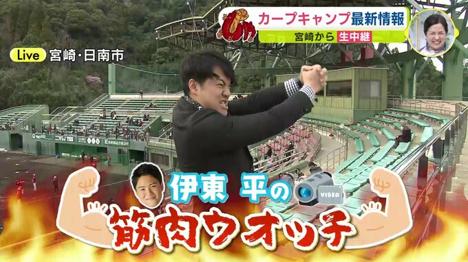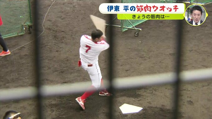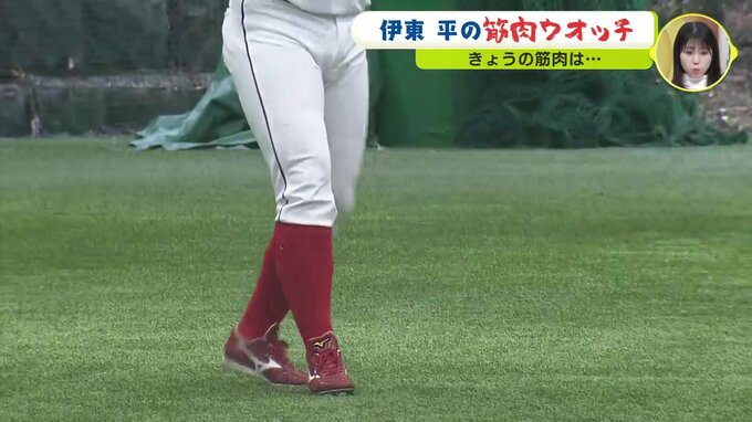 きょうの「伊東平の筋肉ウォッチ」―。ここまで広島カープの日南キャンプからたくさんの筋肉をご紹介したわけなんですけど、きょうはこの選手です。