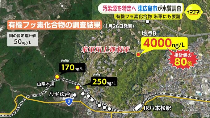 東広島市は去年12月、中国四国防衛局を通じて、在日アメリカ軍に川上弾薬庫でのPFOSとPFOAが含まれる泡消火剤の保有や使用履歴を確認していますが、まだ回答はないということです。