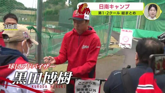 スポーツ 広島カープ 日南キャンプ 第1・2クール総まとめ 沖縄キャンプへの切符をつかめ アピール合戦 激しく 2024年2月9日(金) 18:45 スポーツ 3日目 この日が26歳の誕生日 石原貴規 日南キャンプに合流 レイノルズ&シャイナー 球団アドバイザー・黒田博樹さんがサイン会 4日目 ブルペンで投げ込む斉藤優汰 オフ前恒例 ロングTEE
