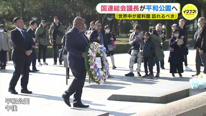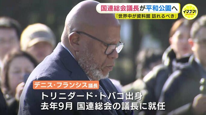 11日から来日したフランシス議長は平和公園の原爆慰霊碑を訪れ、花を手向けました。中南米のトリニダード・トバゴ出身で去年9月、国連総会の議長に就任しました。
