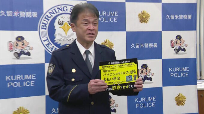 久留米警察署から感謝状が贈られたのは、久留米市内のセブン-イレブンに勤務する長谷佳奈子さんたち3人です。3人は、去年12月と先月、高額な電子マネーを購入しようとした客らに購入理由をたずねました。客が、サイトの未払い料金支払いのためと答えたことから詐欺の可能性があると判断して警察に通報し、ニセ電話詐欺の被害を未然に防ぎました。