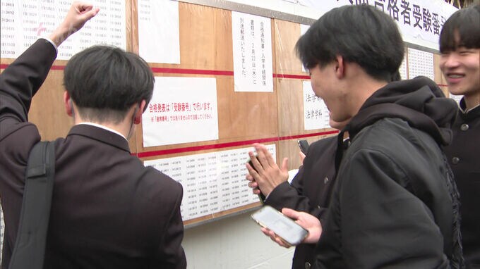 福岡市早良区の西南学院大学では、22日午前10時に一般選抜入試の合格者の受験番号が貼り出されました。西南学院大学の前期日程一般選抜入試では、7学部合わせて約1万9000人が受験し、5969人が合格しました。