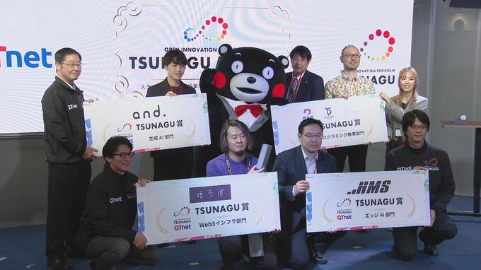 今年で4回目となるQTnetのオープンイノベーションプログラム「TSUNAGU2023」には、40件の応募があり、その中から4つの新規事業が選ばれました。プログラミング教育部門で表彰されたのは福岡市のしくみデザインが開発したアプリを使ってゲームを作る教育支援事業です。小学生を対象としたワークショップなどを開催し、プログラミングを楽しく学べることなどが評価されました。また、ChatGPTなどで関心が高まっている生成AI部門で表彰された東京のスタートアップ企業は、QTnetと共同で情報漏洩などがないように安全性を高めた新たなプラットフォームを開発しました。QTnetは「今後も新しいアイデアで社会課題の解決につなげたい」と話しています。