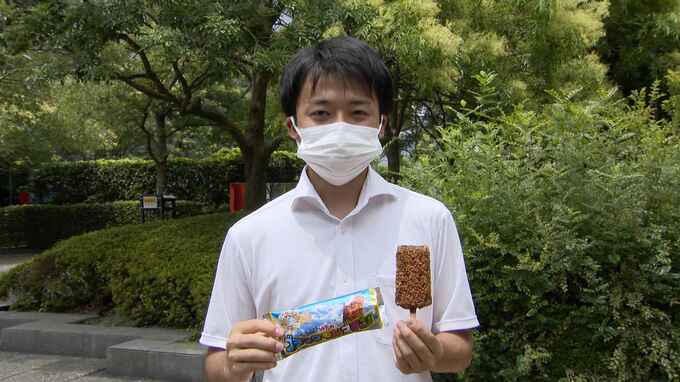 RKB若松康志「竹下製菓といえば、こちらブラックモンブランです。バニラアイスに、チョコレートとクッキークランチをまぶした洋菓子風のアイスは、幅広い世代に愛されています」