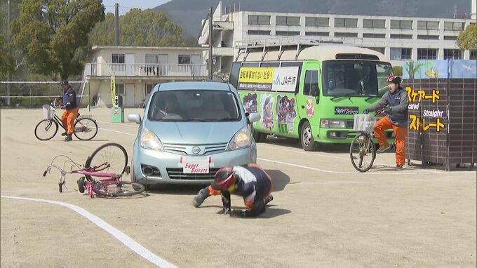 北九州市小倉南区で中学生と高校生を対象に開かれた自転車の交通安全教室では、スタントマンが事故を再現し、恐ろしさを伝えました。