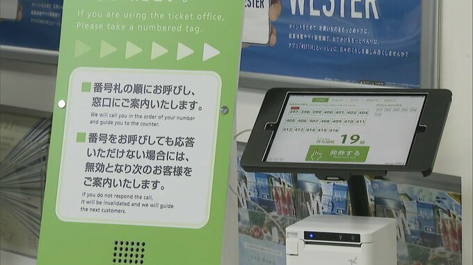 「立って並ばなくてもいい」みどりの窓口に整理券システム JR西日本が小倉駅で導入 「待ち時間に買い物」も可能に 2024年3月29日(金) 19:39 国内 JR西日本は29日、小倉駅の「みどりの窓口」で、整理券を発行して順番を待つシステムを導入しました。待ち時間を買い物などで有効的に使ってほしいとしています。 RKB下濱美有「JR小倉駅のみどりの窓口、…