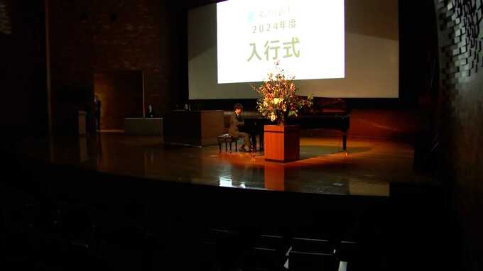 先輩社員によるピアノ演奏で始まった福岡銀行の入行式。五島久頭取は、新入行員たちにサプライズを準備していました。