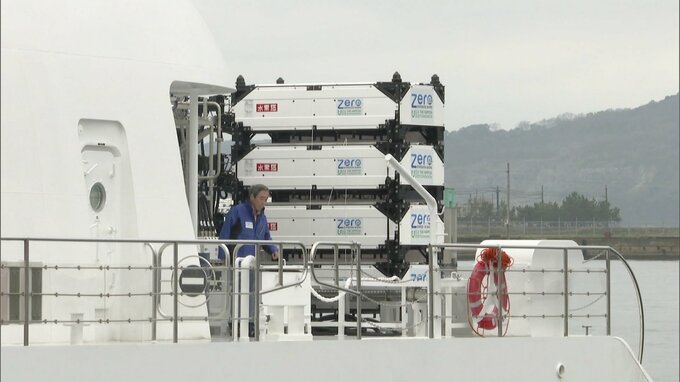 福岡県北九州市で4日公開されたのは、水素燃料電池などを搭載した洋上風車作業船「HANARIA」です。「HANARIA」は、3月に行われた実証実験で小倉港から白島沖にある洋上風力発電施設までの間往復30キロで、洋上風車作業船として世界で初めて二酸化炭素を排出しない航行に成功しました。