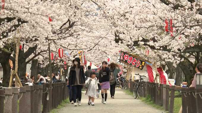 新しいランドセルを背負った小学生が桜の花と一緒に写真を撮ったり、地元の人が宴会を楽しんだり、桜並木は多くの人に親しまれています。